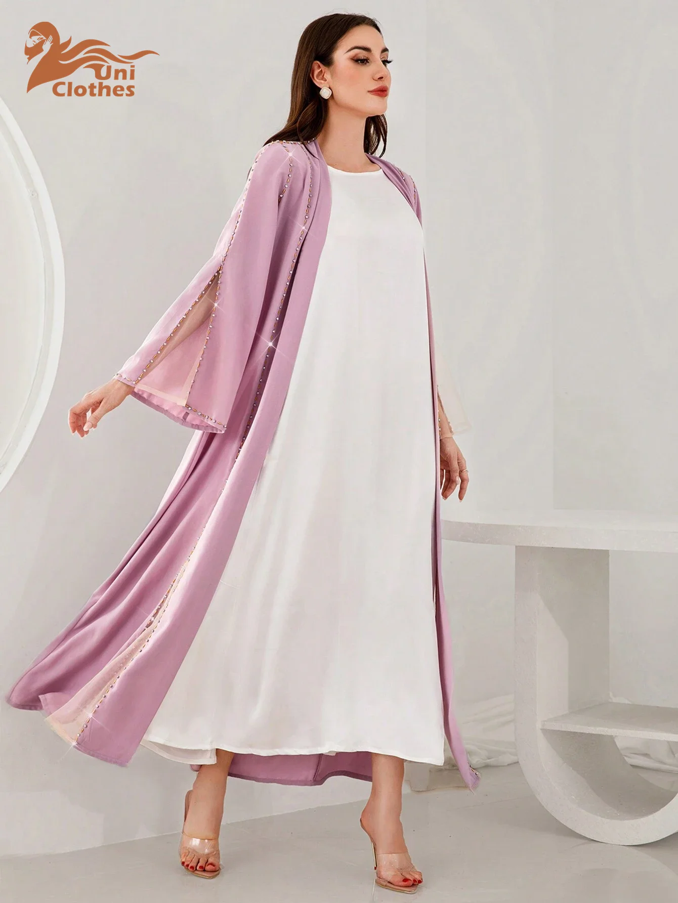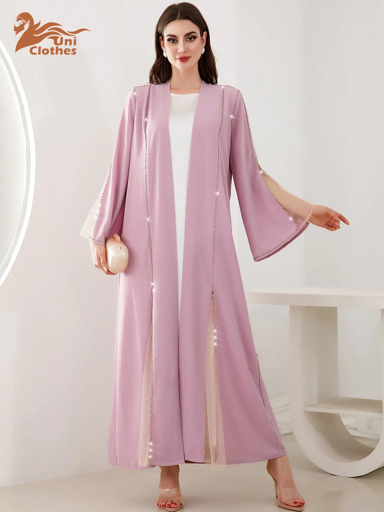 BA4078 Muslim Women's Abaya Eid Al-Adha Robe Turkey Simple Open Abaya Dress Moon Light Abaya Kaftan Dubai Radaman